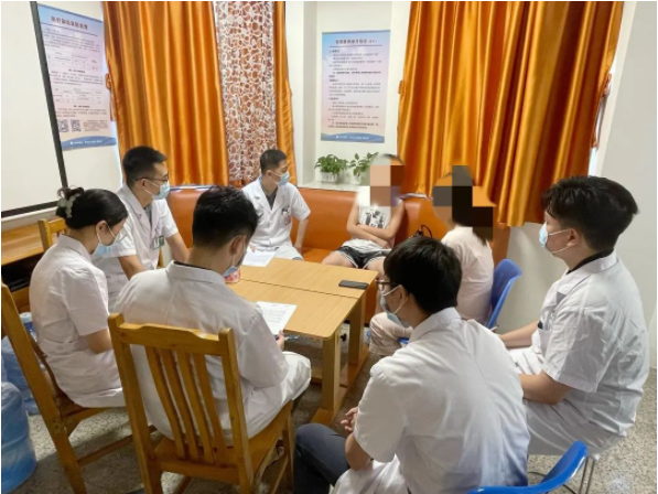 圖丨羅愛民醫師團隊與患者小玲、父親進(jìn)行交流會(huì)診