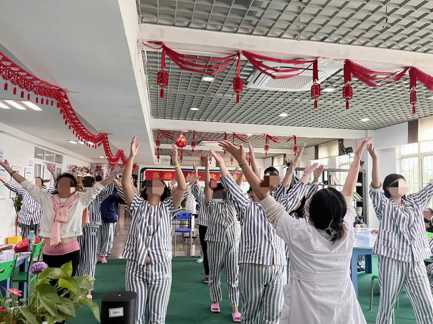 圖|住院病友們一起(qǐ)做體操