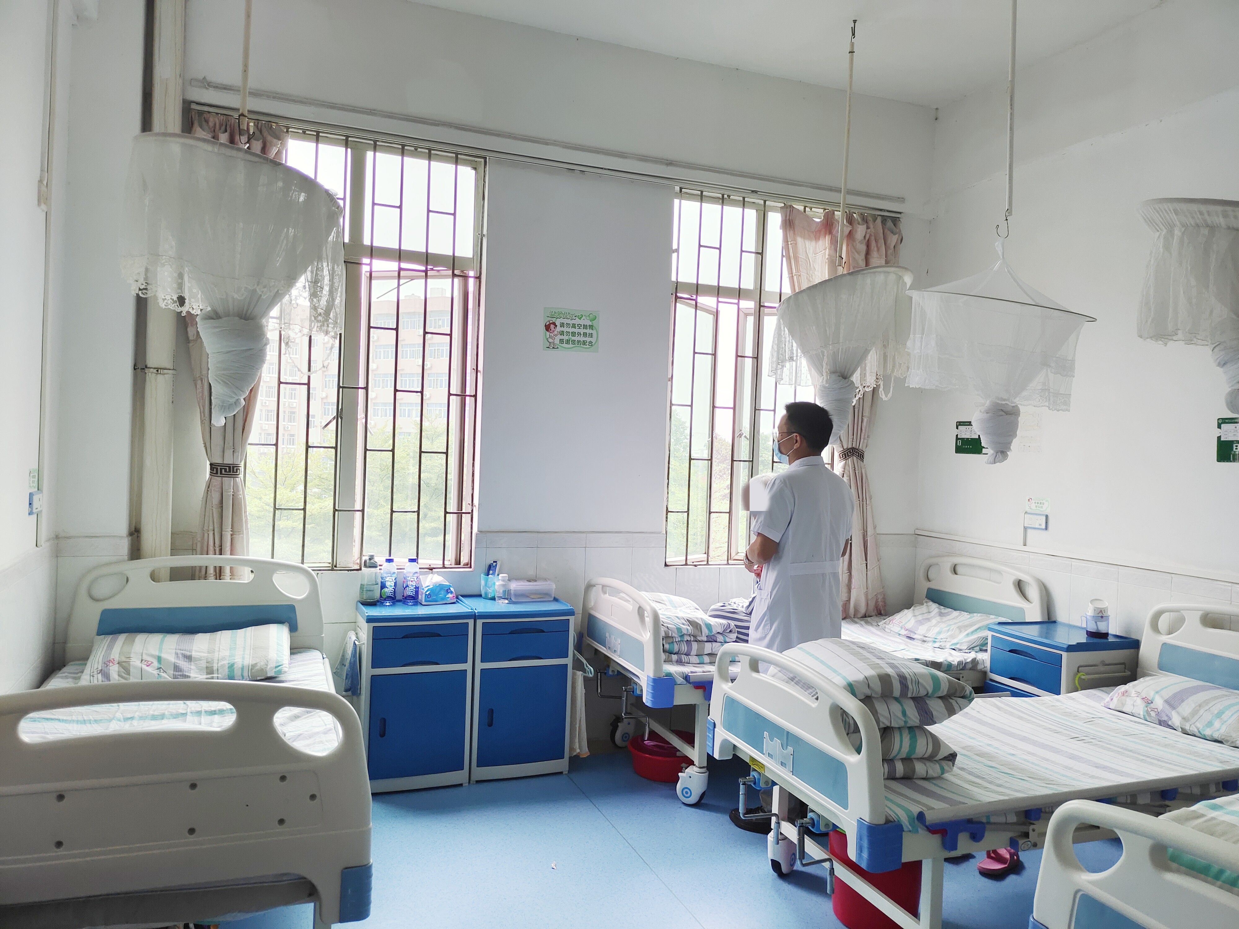 燕女士的床位靠著(zhe)窗,窗外正對(duì)著(zhe)醫院大門,樓下的大樹一片綠意盈盈。有陽光的日子,陽光會(huì)洋洋灑灑地落在窗邊,照在她的身上,她說(shuō)陽光很暖和。