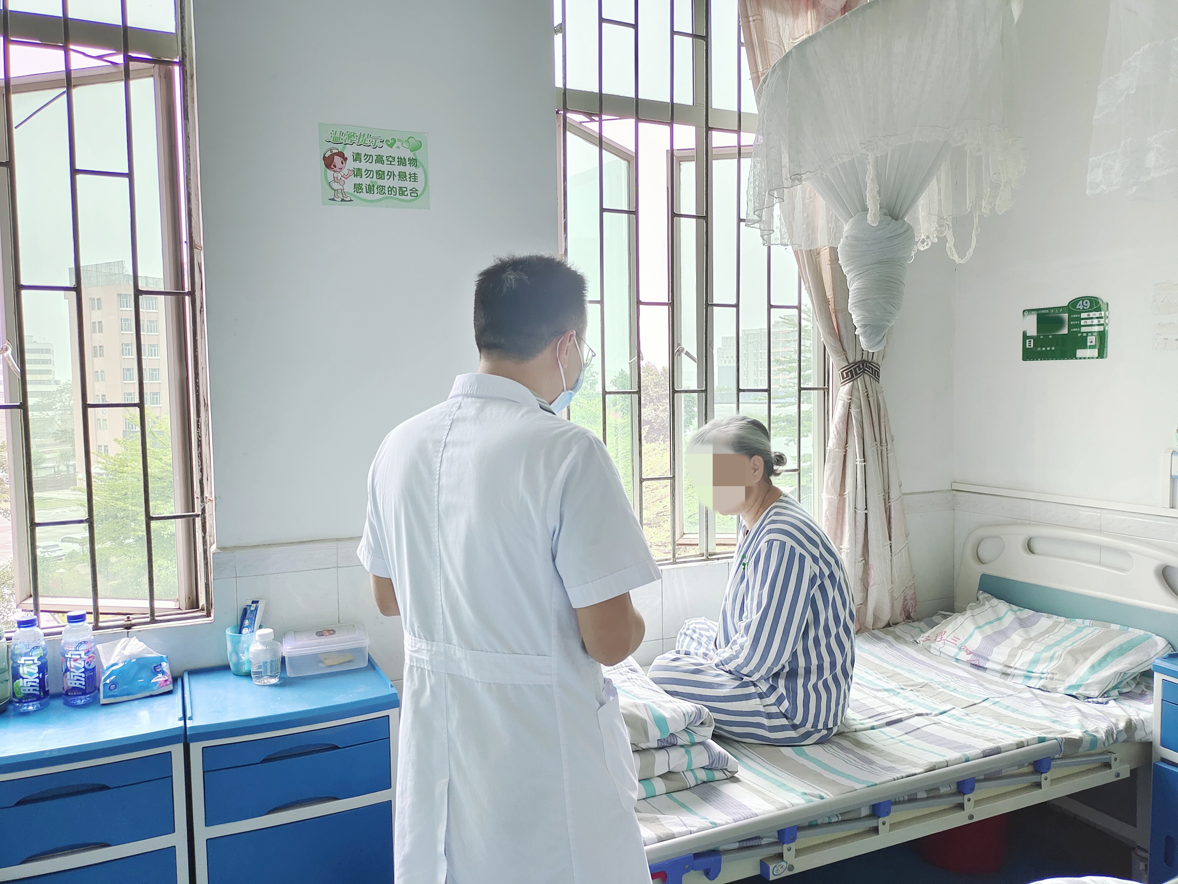 最近,她覺得有些失落、孤單,由于年紀漸長(cháng),她看不了手機,一看眼睛就(jiù)花,除了日常看電視,大部分時(shí)間便是坐在床邊看著(zhe)窗外。由于近期廣州疫情嚴重,所以醫院管理也十分嚴格,患者暫時(shí)不能(néng)下樓随意走動了。